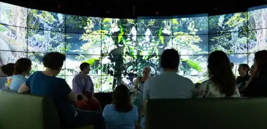 Field recordings, photography and video are transformed into a high-definition, large-scale animation as an invitation to consider how vision technologies can serve as tools for creative environmental research. Drawing on emerging technologies, biosphere animal characters and surrealist modes of composition, the work reflects on children’s books and the role of visual language in learning about land from a young age. It imagines alternative and co-designed futures by listening to stories of ecological care held within these sites before colonisation and renewed through contemporary collaborations and learning.